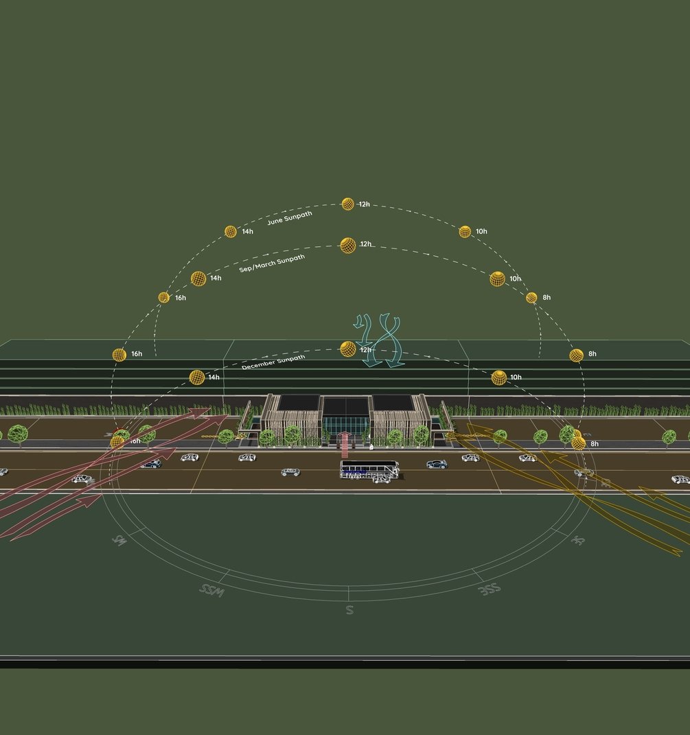 - SketchUp: Modeling and create Sun path with plugin Sun diagram, ( download plugin at link : https://sundiagram.com/sun-diagram )